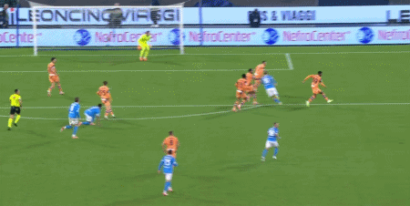 那不勒斯在上一轮客场0:2不敌博洛尼亚,遭遇了双线连续三场不胜的困境。今天回到主场迎战亚特兰大,他们迅速找回了状态。比赛刚开始不久,第16分钟,那不勒斯发起了一次迅猛的快速反击,从中后场开始传递,霍伊伦在中线前巧妙地给内雷斯送出一记精准直塞球。内雷斯凭借个人速度突破吉姆西蒂的防守,迅速推进至禁区,冷静地将球推射入远角,帮助那不勒斯首开纪录。这也是内雷斯本赛季在意甲的首个进球,比分变为1:0。