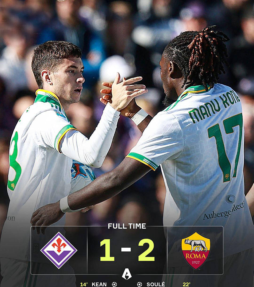 罗马队在客场对阵佛罗伦萨的比赛中,虽然先失一球,但随后连扳两球反超比分,最终以2-1获胜。在比赛进行到第13分钟时,佛罗伦萨的基恩打进一记世界波让罗马队0-1落后;但仅仅7分钟后,罗马就扳平比分,小将苏莱的远射让比分变成1-1;再过16分钟,克里斯坦特在角球进攻中头球破门,帮助罗马2-1反超比分。尽管主队佛罗伦萨曾试图发动疯狂反击,但面对罗马队铁桶般的防守,最终无功而返,最终以1-2失利,看着罗马队获得3连胜,积分达到15分,与那不勒斯并列榜首。值得一提的是,加斯佩里尼的球队在6轮比赛中仅丢2球,不仅是意甲中失球最少的球队,也是五大联赛中拥有最强钢铁防线的球队。