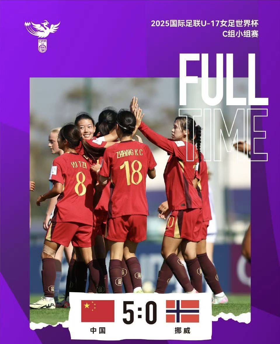 北京时间10月18日,2025年U17摩洛哥女足世界杯C组首轮比赛,周欣怡、方珍珠各入两球,中国队5比0大胜挪威队,取得赛事“开门红”。