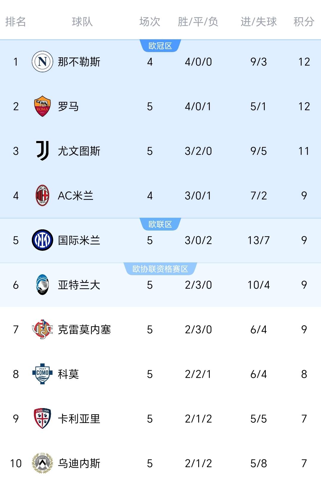 意甲直播,意甲赛程,意甲积分榜,尤文图斯直播,意甲比分预测/面向中文球迷的意甲资讯平台,涵盖2025赛季完整赛程、免费高清直播入口、积分榜更新与竞彩波胆预测,聚焦尤文、国米、米兰三大豪门赛事。随着意甲联赛第5轮部分场次战罢,积分榜形势出现新变化。在罗马奥林匹克球场,主场作战的罗马队延续火热状态,凭借多夫比克和苏莱的进球,以2-0完胜维罗纳,豪取各项赛事三连胜。此役过后,罗马队积分达到12分,排名跃升至联赛次席。