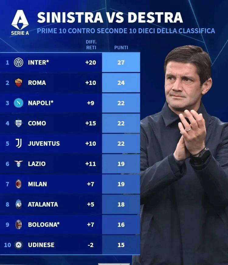 国米能够取得这样的成绩,与他们在“小鱼吃大鱼”上的卓越表现密不可分。相比之下,AC米兰则在面对实力较弱的对手时频繁失分,导致虽然击败过国米,但整体积分落后,未能撼动蓝黑军团的领先位置。但另一方面,国米在顶级豪门之间的强强对话中还有提升空间。本赛季迄今为止,国米与其他前十球队较量共计9次,仅获得15分,且在与多支夺冠热门如AC米兰、尤文图斯和那不勒斯的交锋中屡屡落败。此外,意甲第二轮主场以1-2负于乌迪内斯也给球队敲响了警钟,证明即便是弱队也具有一定威胁。联赛过半即丢4场,确实未能体现理想中的竞争态势。