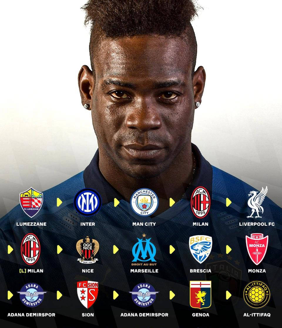 从欧洲多家豪门到中东相对低级别的联赛,巴洛特利用了整整十年时间,完成了一场几乎无力回弹的职业轨迹下跌。在这十年间,他先后辗转于9个不同的俱乐部,频繁转会达到10次,足迹遍布意大利、法国、瑞士、土耳其,如今更是在阿联酋的次级联赛苦战。从当年的奖杯收割者逐渐沦为今日的“流浪球员”,他的职业人生写满了浮沉变迁。