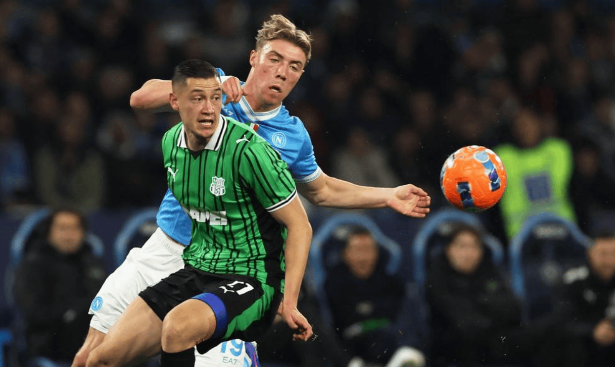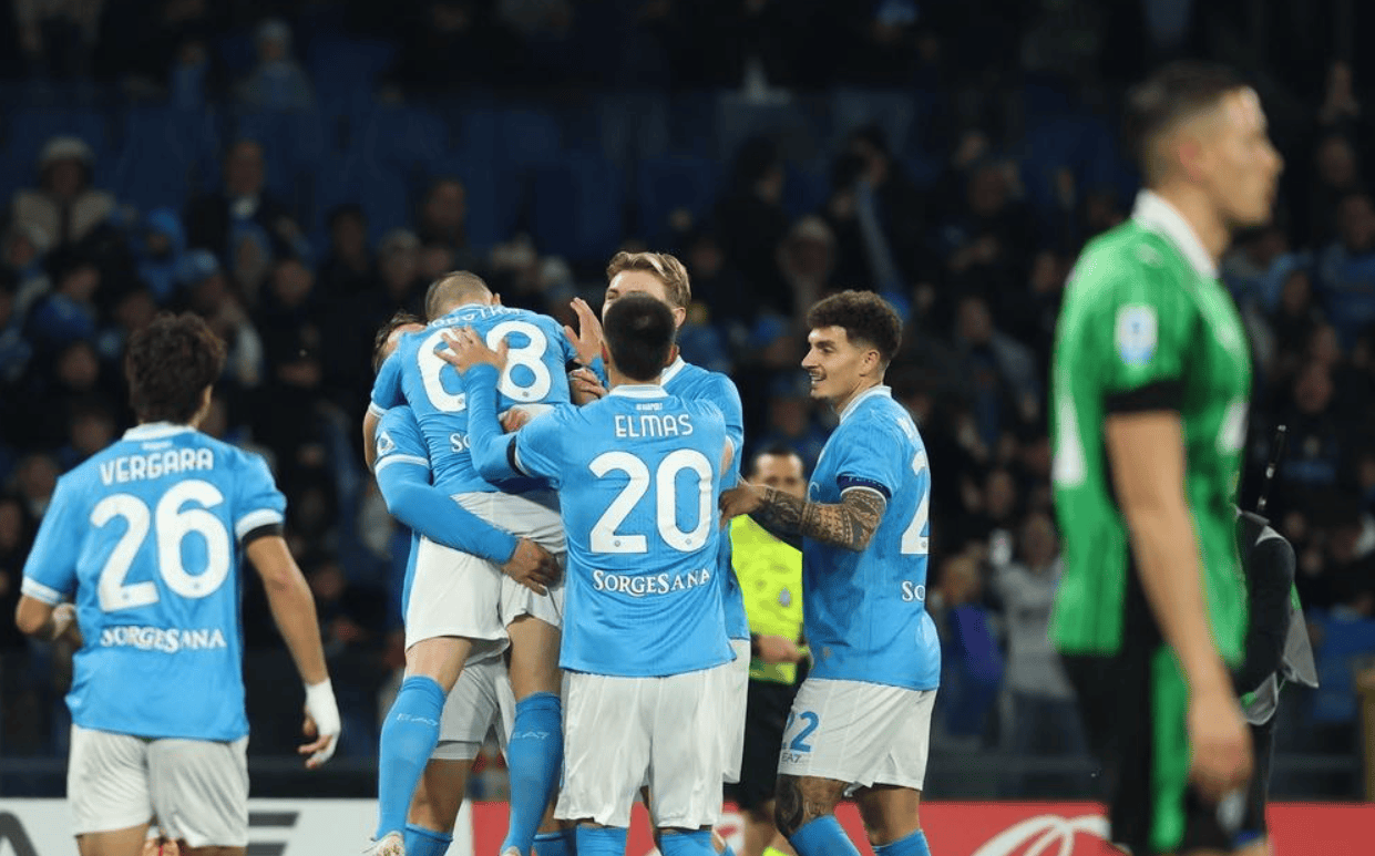 那不勒斯排出3421阵型。霍伊伦顶在最前面。韦尔加拉和埃尔马斯在他身后。迪洛伦佐、洛博特卡、麦卡利斯特和斯皮纳佐拉4中场联袂出击。比克马、拉赫马尼和胡安-热苏斯3后卫首发出战。瓦尼亚-米林科维奇-萨维奇担任首发门将。那不勒斯首发阵容总身价2亿欧元,而萨索洛首发阵容总身价8780万欧元。