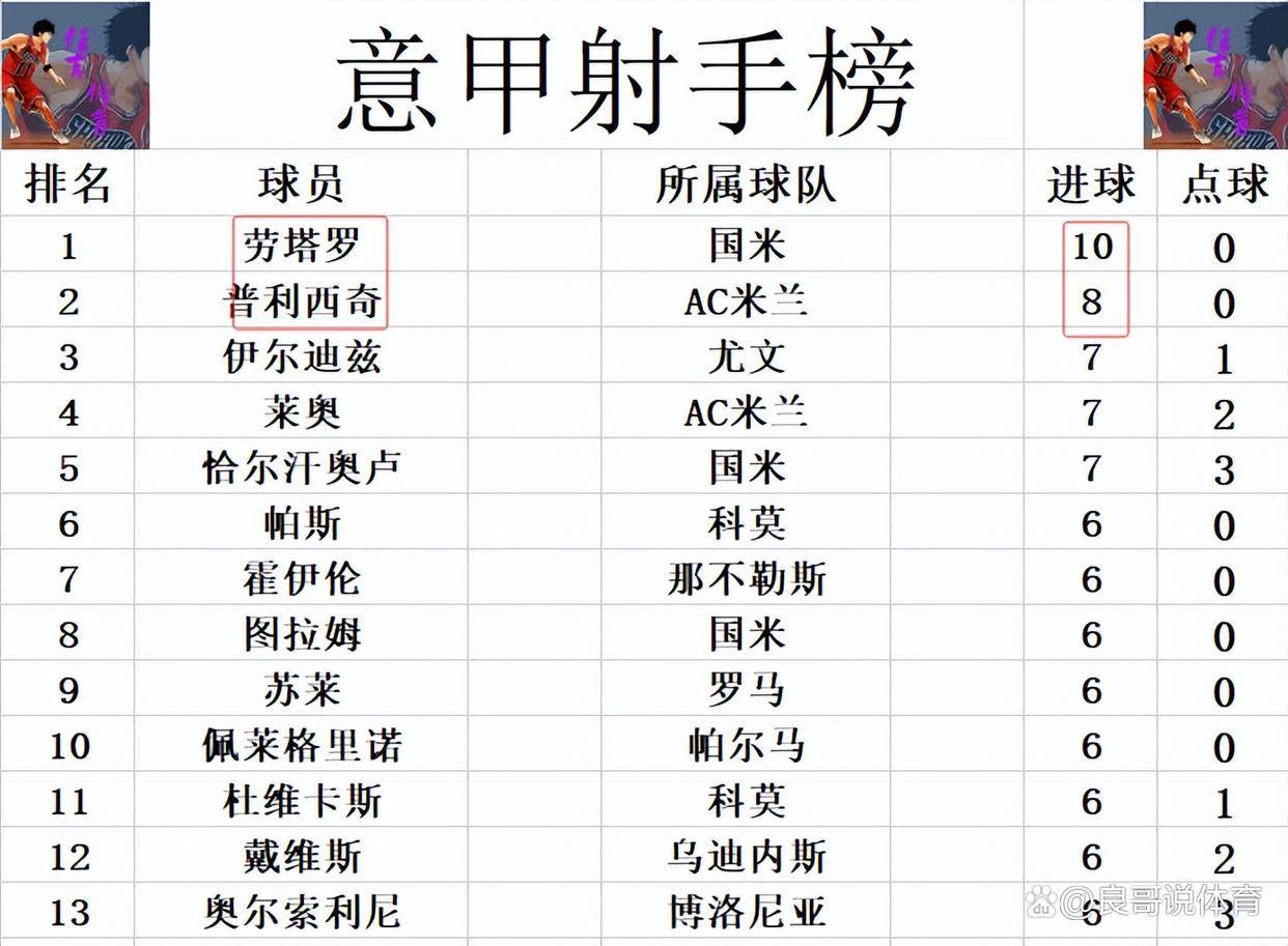 在射手榜方面,劳塔罗依然以10粒进球领跑,普利西奇以8球紧随其后。伊尔迪兹、莱奥和恰尔汗奥卢以7球并列第三。图拉姆本场比赛未能进球,以6球与苏莱、奥尔索里尼等人并列射手榜前十。